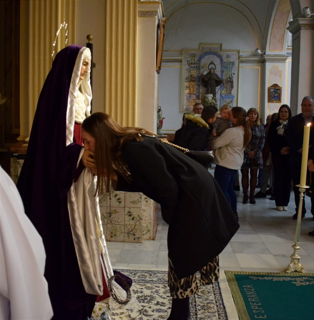 Decenas de personas se congregaron en el santuario del Beato Andrés Hibernón, este sábado 2 de marzo, para participar en la eucaristía y besamanos a la Virgen de la Esperanza en la Resurrección, sagrada titular de la hermandad del Santo Sepulcro de Gandia.