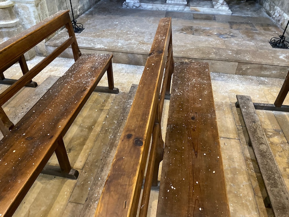 Los efectos de las lluvias recientes se suman a años de deterioro. La parroquia asegura haber invertido más de 180.000 euros en mantenimiento y otros 153.000 en limpieza, pero los daños continúan y cada temporal empeora la situación. Las capillas laterales también muestran humedades persistentes, y las instalaciones eléctricas corren riesgo por la filtración de agua.