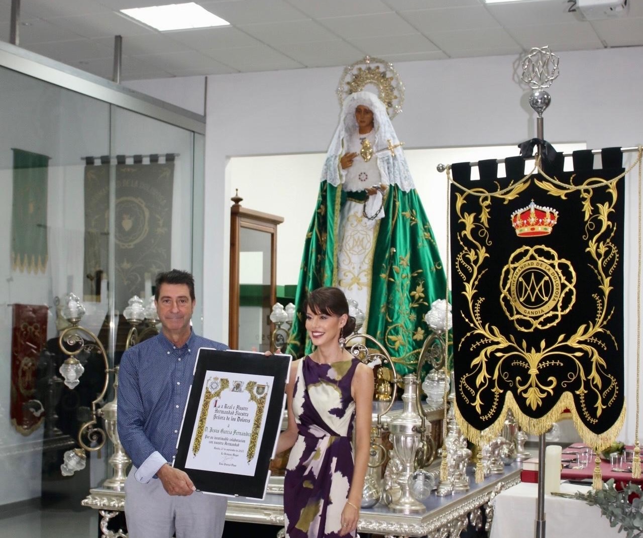 El reconocimiento a García tuvo un significado especial, ya que la Policía Nacional ostenta el título de Hermano Mayor Honorario de la Dolorosa. En un gesto de gratitud y respeto, la Hermandad le impuso la insignia de plata, símbolo de los lazos que unen a la institución con la cofradía.