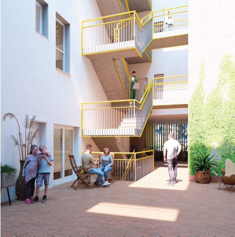 Els 42 habitatges s’ubicaran al barri de la Plaça El·líptica, una zona residencial ben comunicada, a prop del Palau de Justícia i envoltada d’àrees peatonals amb arbres. L’edifici inclourà habitatges d’un, dos i tres dormitoris, tots amb terrassa. A més, comptarà amb un pati central obert que millorarà la ventilació natural i fomentarà la interacció entre els residents. El disseny també incorpora un garatge i un espai específic per a l’aparcament de bicicletes.