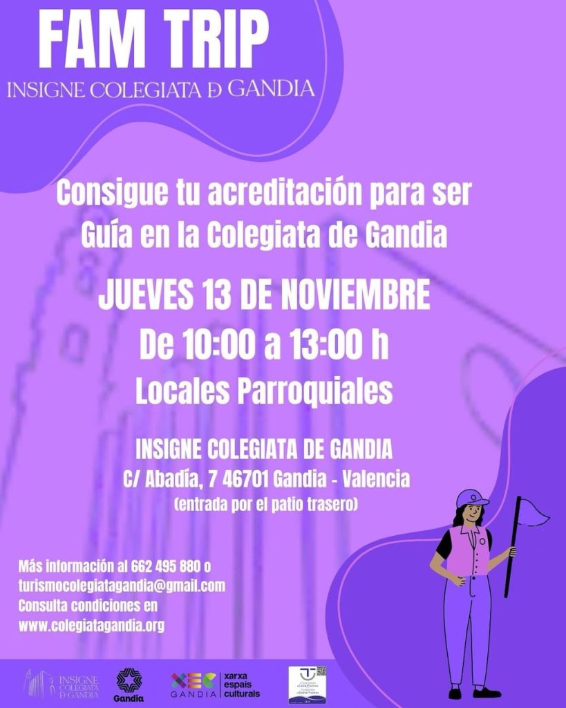 L’any passat ja es va organitzar la primera Fam Trip, amb la qual es va donar l’oportunitat als guies acreditats d’exercir les visites de manera directa. Així, la Colegiata es converteix en l’únic edifici de Gandia que ofereix aquesta possibilitat a guies externs.