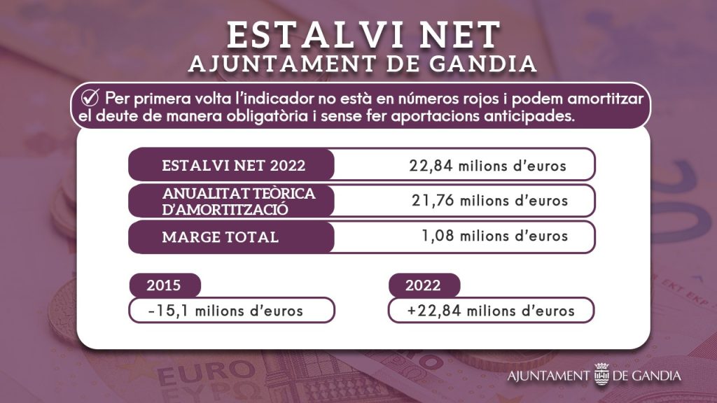 En cuanto al remanente, tal y como se había avanzado, éste asciende a 25,1 millones de euros, lo que suponen el mayor remanente jamás logrado en Gandia.