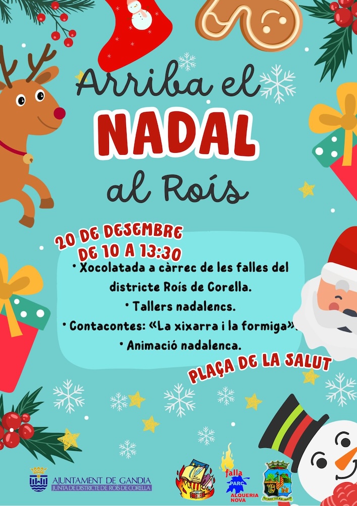 Així, la jornada, sota el lema «Arriba el Nadal al Roís», se celebrarà de 10.00 a 13.30 hores a la plaça de la Salut i comptarà amb una variada oferta d’activitats adreçades especialment al públic familiar. La programació inclou una xocolatada popular a càrrec de les falles del districte (Roís de Corella, Lluís Belda i l’Alqueria Nova); tallers nadalencs; animació infantil i una sessió de contacontes amb l’obra «La xixarra i la formiga».